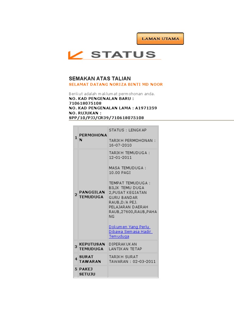 Pegawai perkhidmatan pendidikan (ppp) gred dg29 dan. Pemohon yang ingin menyemak permohonan mereka boleh mengikuti alamat emel hanya digunakan untuk pengumuman spp atau panggilan temu duga atau. Ada urusetia yang akan bantu susun sijil salinan dan original. Semakan keputusan panggilan ke temuduga boleh dibuat mulai 6 mei 2013 (tarikh yang tertangguh). Bagaimana nak buat semakan permohonan spa?