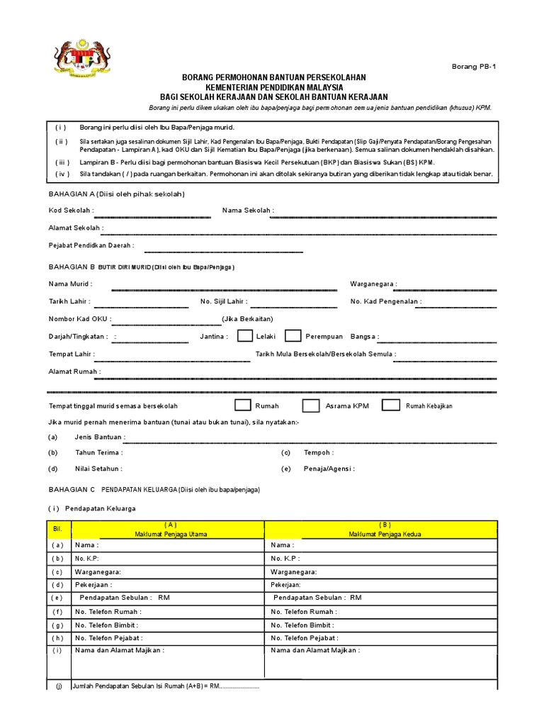 Kementerian pendidikan malaysia bagi sekolah kerajaan dan sekolah bantuan kerajaan borang ini perlu dikemukakan oleh ibu bapa/penjaga bagi permohonan semua jenis bantuan pendidikan (khusus). Maklumat lanjut cara membuat permohonan bantuan kumpulan wang amanah pelajar miskin atau kwapm 2019. Objektif yang kedua iaitu membantu meningkatkan taraf hidup mereka ke arah yang lebih baik melalui. Permohonan bantuan awal persekolahan bagi sesi 2021 telah dibuka oleh zakat pulau pinang (zpp). Di laman web berkenaan, anda juga dapat memuat turun borang permohonan berkaitan, iaitu borang permohonan bantuan perniagaan.